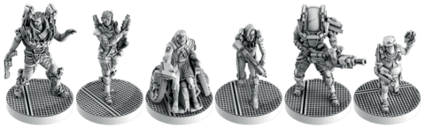 - 6 миниатюр игровых персонажей: капитан, пилот, учёный, разведчик, солдат, механик.